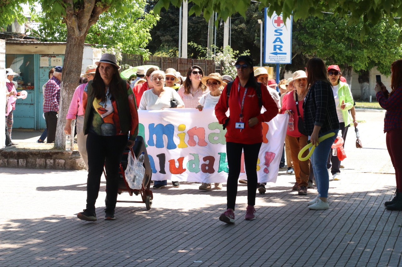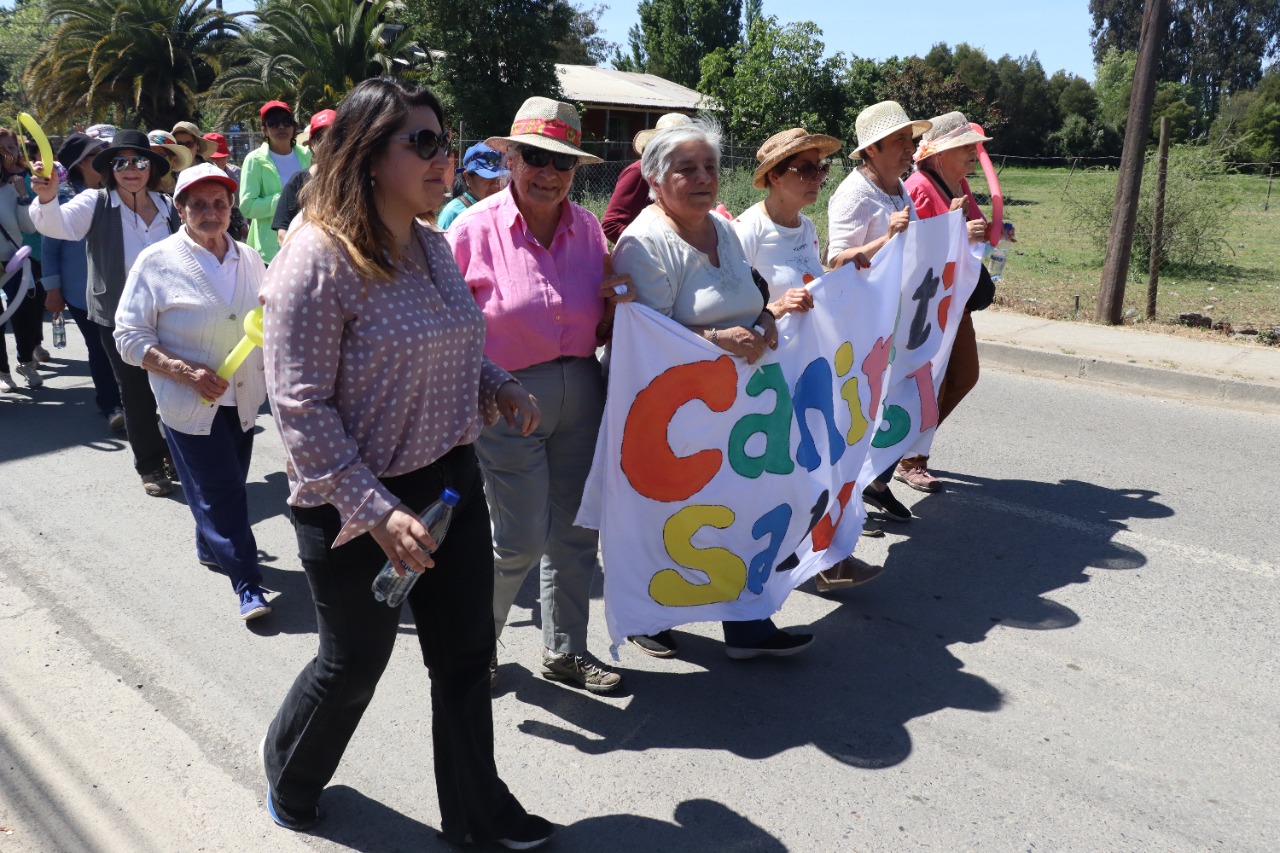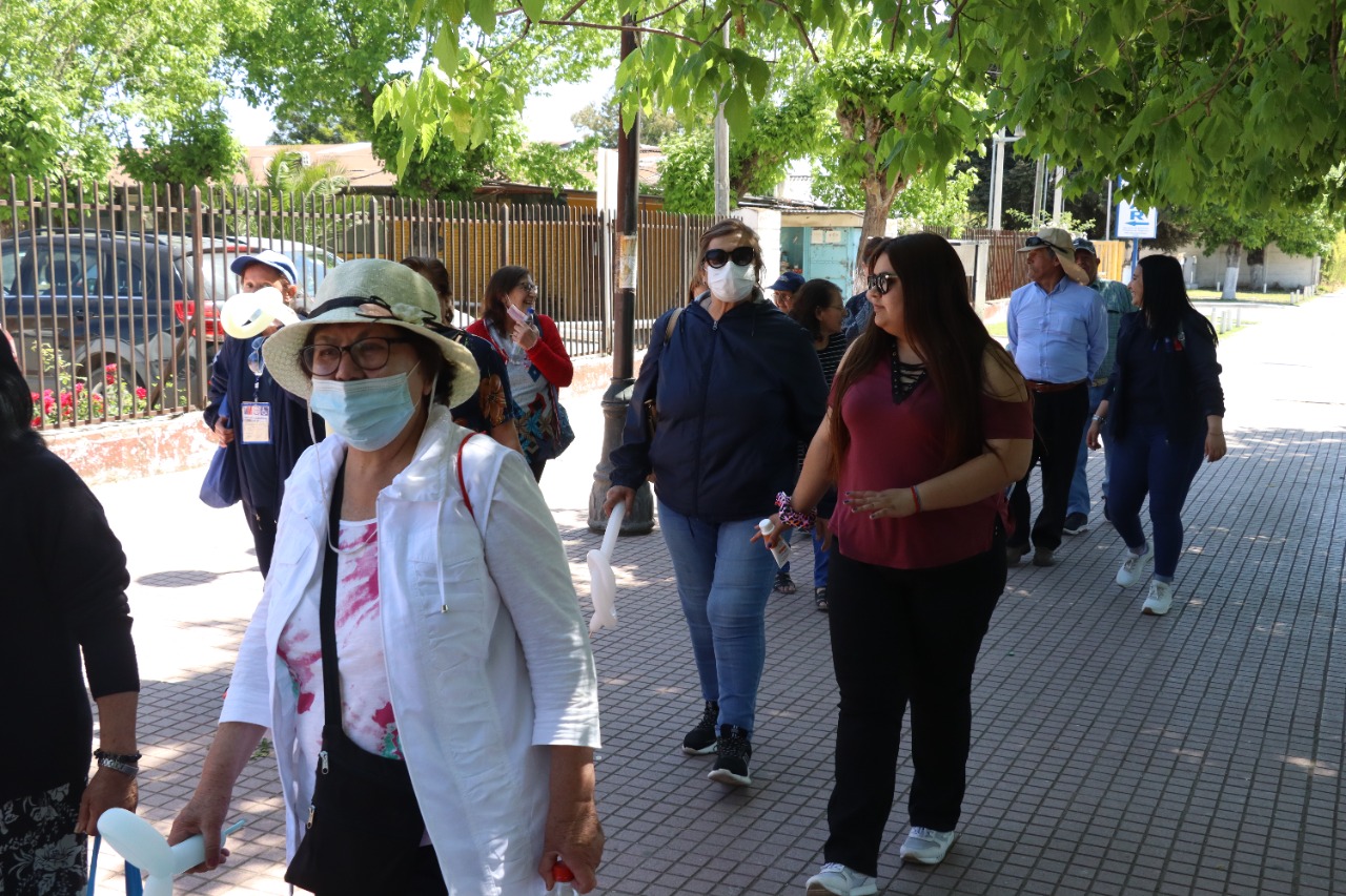 Hoy se realizó caminata saludable y feria de salud por el mes de los adultos mayores y la alimentación saludable, liderada por Salud, en colaboración con la Municipalidad y Educación. La iniciativa comenzó en el CESFAM de la comuna, con gran convocatoria y terminó con entretenidas actividades en el establecimiento municipal Hernán Lobos Arias, donde se instaló la feria informativa de salud.