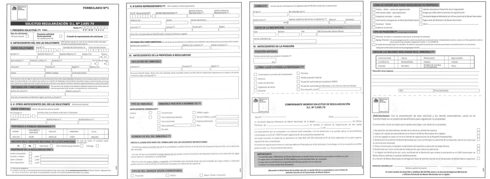 Formulario de solicitud de inscripción de terreno sin dominio.