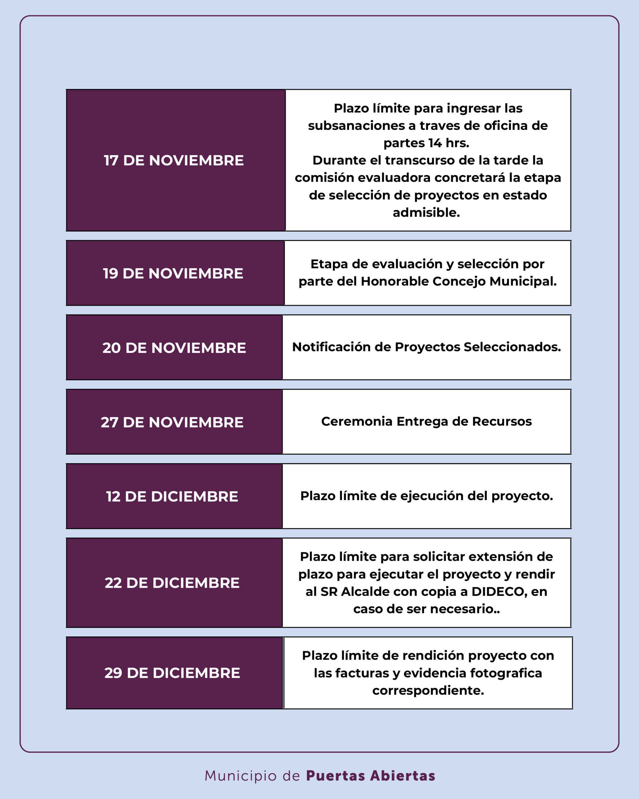 📌 Podrán postular proyectos en las siguientes líneas: Urbanística y de infraestructura Sociocultural, Deportes, Turismo y Medio Ambiente Equipamiento e Implementación Protección Civil, Seguridad y Organización de Barrio