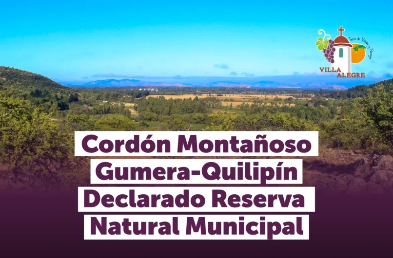 El Cordón Montañoso Gúmera–Quilipín es un espacio natural de gran relevancia para la comuna de Villa Alegre y la provincia de Linares, destacando por su valor cultural, patrimonial, ecológico y productivo. En el marco de lo establecido por la Ley N°18.695 Orgánica Constitucional de Municipalidades, que reconoce entre las funciones municipales la protección del medio ambiente y la salud pública, así como la administración de bienes municipales y nacionales de uso público, se impulsa la protección y preservación de este importante entorno natural. Esta declaración ya se encuentra publicada en el Diario Oficial, formalizando su reconocimiento como Reserva Natural Municipal.