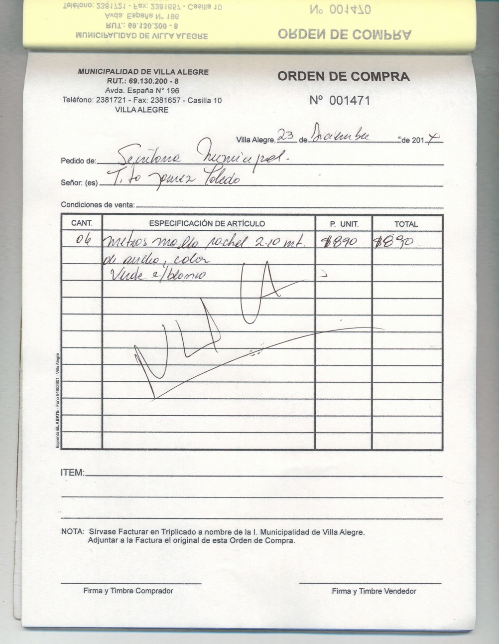 | Compras menores a 3 UTM | NULA | 1471 | Enlace | |||||||||||||||
